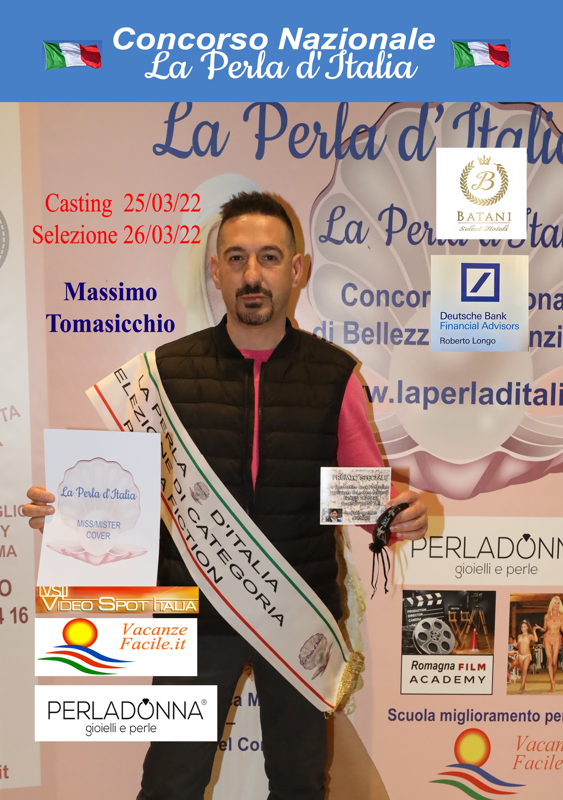 Chi non supera il Casting potrà ritentare anche se consigliamo di prenotare il Corso di Miglioramento Personale, perché sicuramente ne ha bisogno. La Perla d’Italia promuoverà tutti i partecipanti per farli conoscere nel mondo della Moda, dello Spettacolo, del Cinema, della Televisione tramite suoi partner e i suoi sponsor.