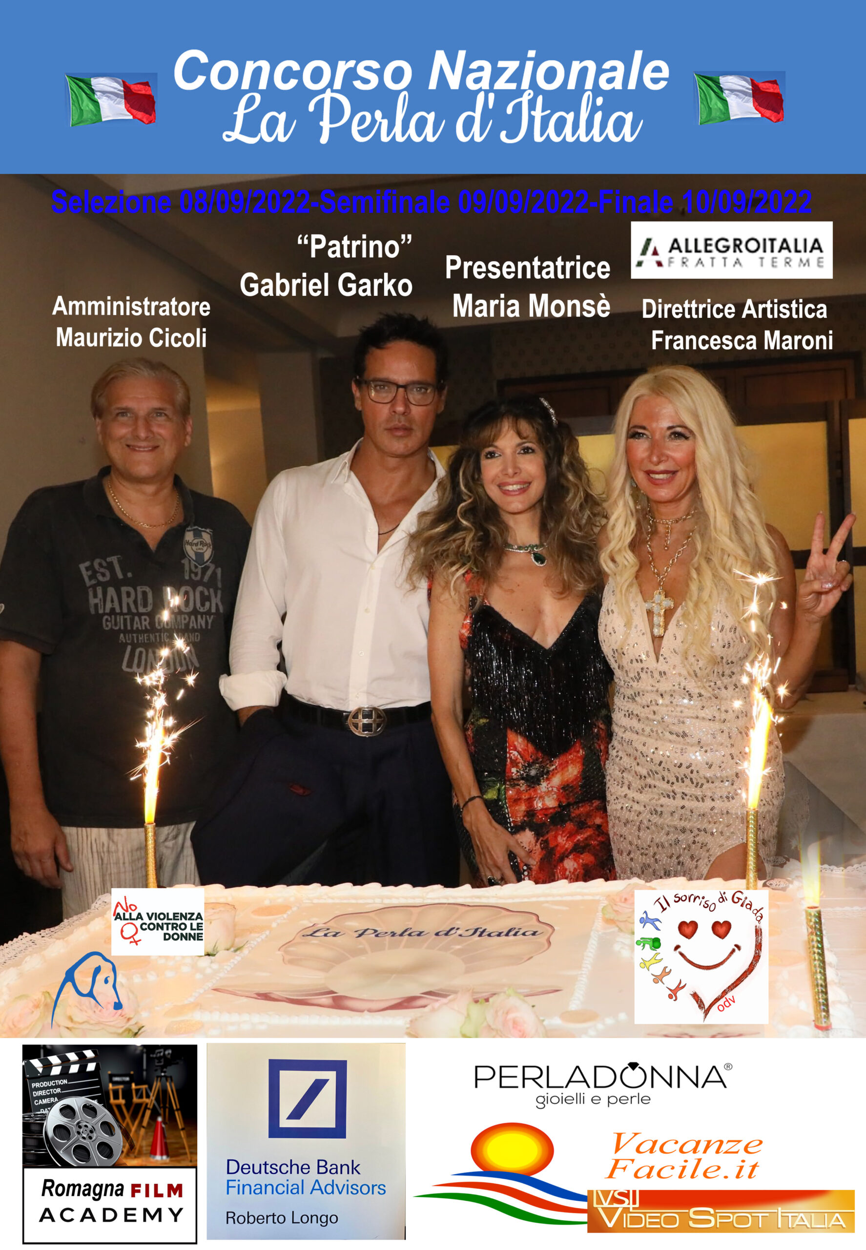 2022 – 8-9-10 settembre a Fratta Terme (FC) c/o Allegro Italia: Padrino Gabriel Garko, presenta la serata finale Maria Monsè