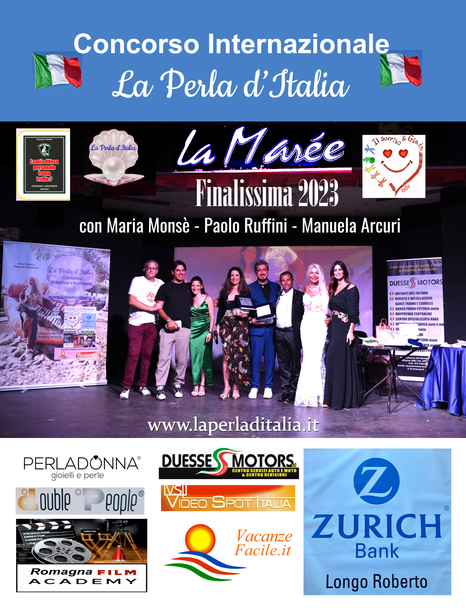 - 1°: Fascia la Perla d’Italia 2025 + Lavori retribuiti euro 3.000,00(*) + visibilità in tutte le pubblicità e in alcuni eventi della Perla d’Italia 2026